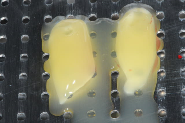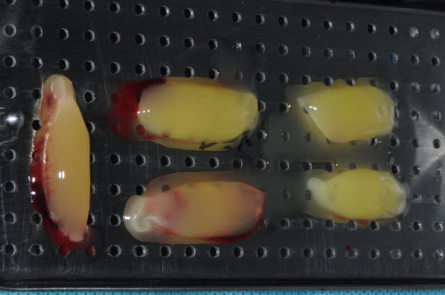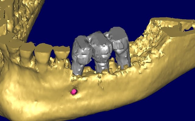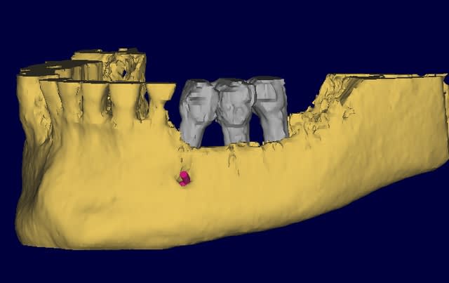 Sur les implants extraits, c'est de l'hydroxyapatite fermenté, du guano ou tout simplement des résidus de vomi du patient qui ne supportait plus l'halitose secondaire à la péri-implantite?