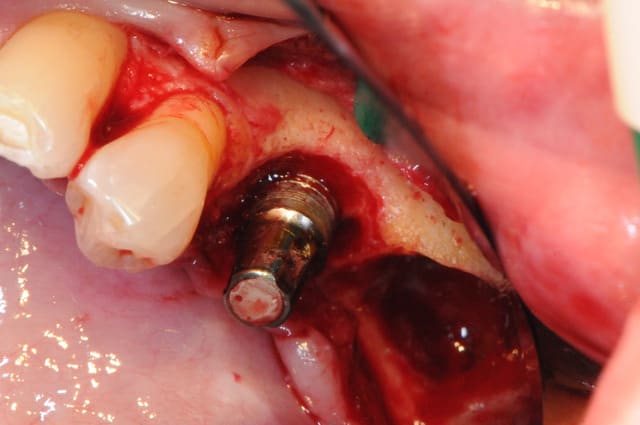 4 après un long moment de nettoyage, de curetage, de surfaçage implantaire, d'aeropolissage de l'implant, etc...