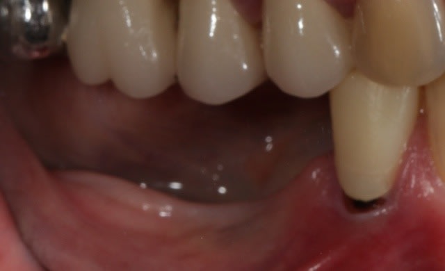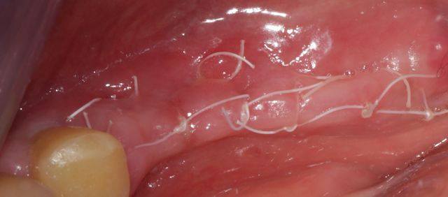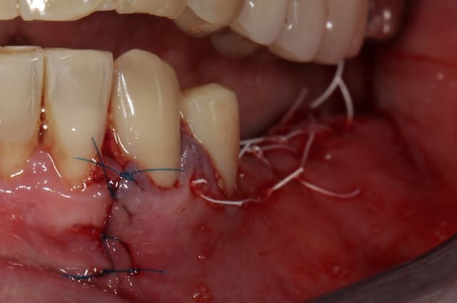 Non je n'ai rien a gratter, mais le bridge doit être remis dans le plan d'occlusion et on a pas mal de hauteur de gencive du à la technique de suture.