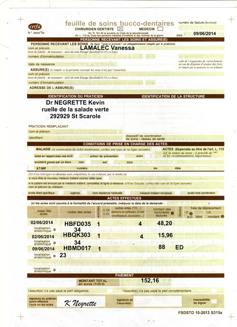 1) acte remboursé sous certaines conditions (ex le détartrage, la couronne..), il faudra prévoir 2 cheminements dans ton logiciel car le code sera le même