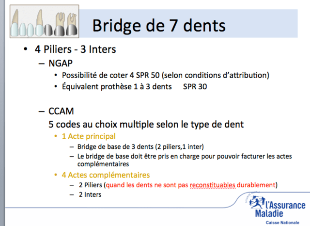Deuxième chose,le CD conseil ne connaissait pas les codes pour plus de 3 piliers de bridge! Genre ça n'existe pas ou la cpam n'a plus envie de rembourser les gros travaux, pour l'instant. Bon courage à ceux qui ont déjà commencé...