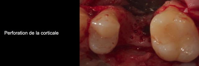 > lambeau, implant, granules et membrane sur toute la partie vestib, voir 2 vis