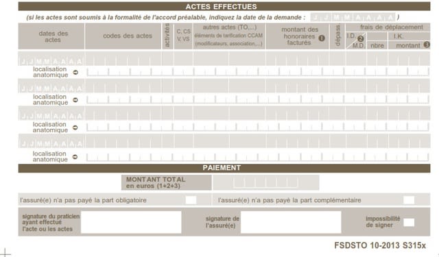 > codes ccam correspondants à ton soin.<