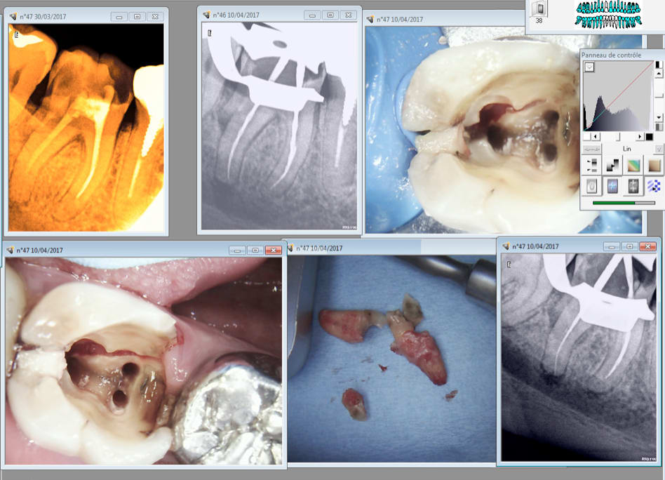 Chouette endo. Jolis petis puffs sur les canaux accessoires de la racine distale. Elle a eu un peu chaud dans la courbure inter radiculaire mais peste, il faut ce qu'il faut:).
