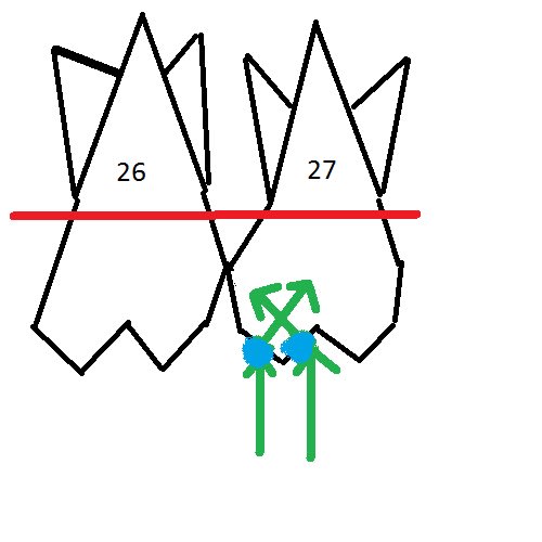 " Pour mon schéma bidon, c'est un cas extrêmement fréquent de patient se plaignant de bourrage entre 7 et 8, ou 6 et 7, alors que le point de contact est objectivement bon au fauteuil.