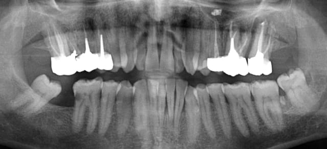 Quelques mois plus tard, je fais cette radiographie panoramique (ci-dessous) dans mon cabinet.