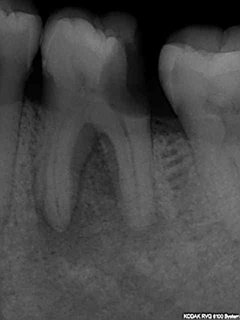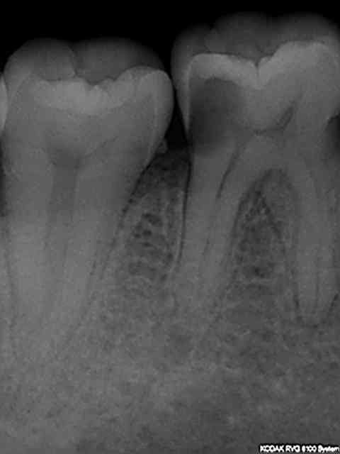 Dans le souci de ne pas irradier la patiente inutilement aucune autre radiographie gratuite d'un autre secteur n'est réalisée. Qui plus est le docteur chicot 29 étant équipé d'un capteur kodak 6100 ne peut pas réaliser de mordus rétro coronaires. Le Dr chicot 29 ayant une demi-heure devant lui réalise l'endo de 46 et cote donc Z6 fois 2 + SC 34 et met la patiente sous atb pour le 4 eme de la 36. Ce faisant il fait économiser à la caisse une C à 23 euros.-))