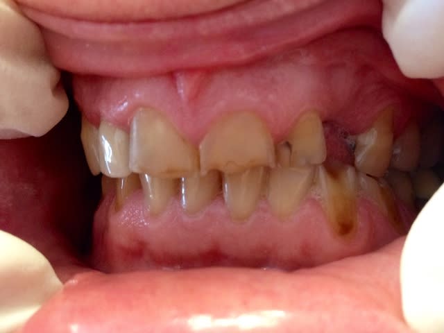 il ne se rend pas compte de son bruxisme et pense que les usures de ses dents sont liées au bridge collé.