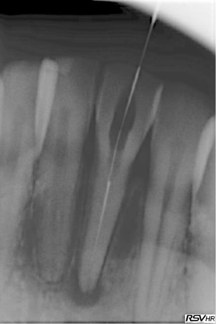 Je décide donc de faire l'endo. La chambre était relativement basse, j'ouvre et je commence à aléser avec une lime 10. Et elle casse...