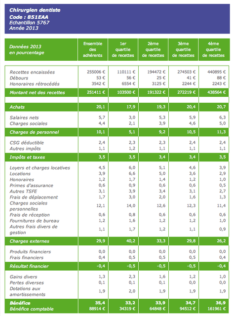 Lors du bilan tous les ans mon comptable me montre un document de l arapl de mon département où les moyennes et les quartiles sont notés ; vous avez les CA les benef les ratio. Et aussi poste par poste ce qui permet de savoir comment on se situe en terme de charge