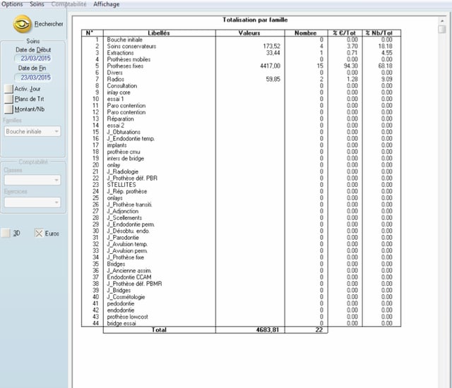 - Cabinet dans le 92, praticienne qui travaillait 4 jour par semaine, et faisaient en moyenne entre 4000 et 4500€ / jour, en ne faisant que de la prothèses fixes (couronnes à 1200€, facettes, plus du tout de soins mais des inlays/onlays...), et du HN (Paro, séances de lasers HN, et de l'implanto)...