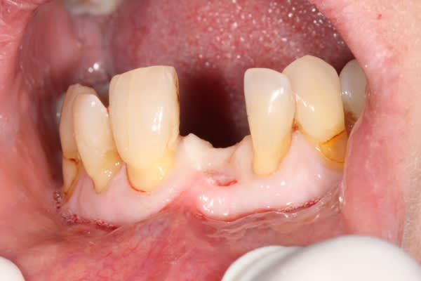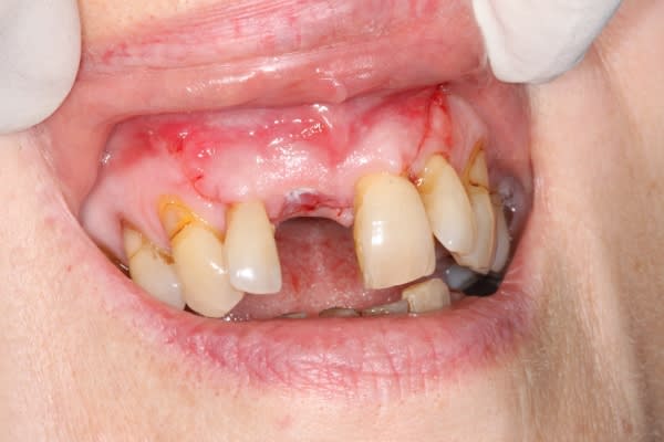 j'ai un cas similaire qui cicatrise et puisque que l'on parlait de recouvrement gingival, voilà un cas où j'espère un résultat sympa... en tout cas c'est prometteur