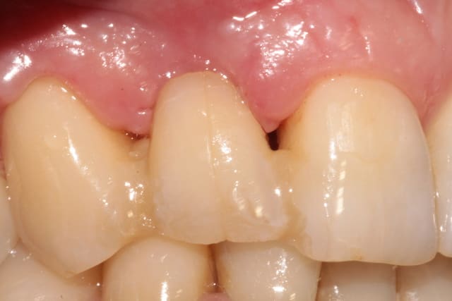 > Effondrement tissulaire après extraction et lambeau repositionné coronairement