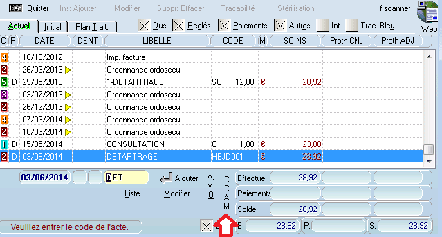 je dois être allergique à la ccam..... je suis incapable de trouver la "touche" ccam sur l'historique des soins?? et hot line une joyeuse utopie...