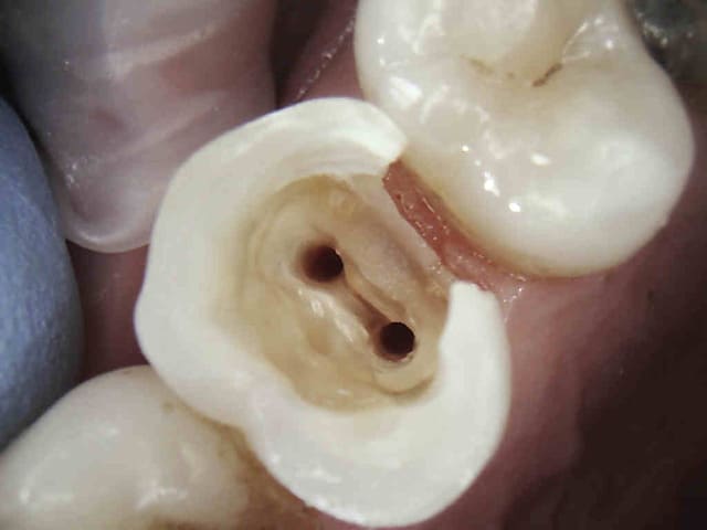 semblant atteindre la jonction cémento dentinaire(à un mm