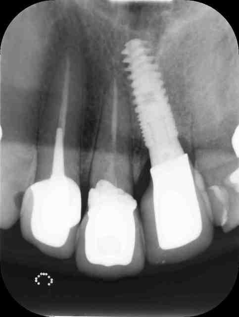 Le patient a une musculature tres forte, notamment dans l orbiculaire des lèvres. Ca appuie sur les deux centrales qui sont un peu plus antérieures que les autres dents. L implant ne bouge pas, la dent naturelle oui. Du coup, sur occlusion, et comme il n y a pas de tenon, il y a des descellement.