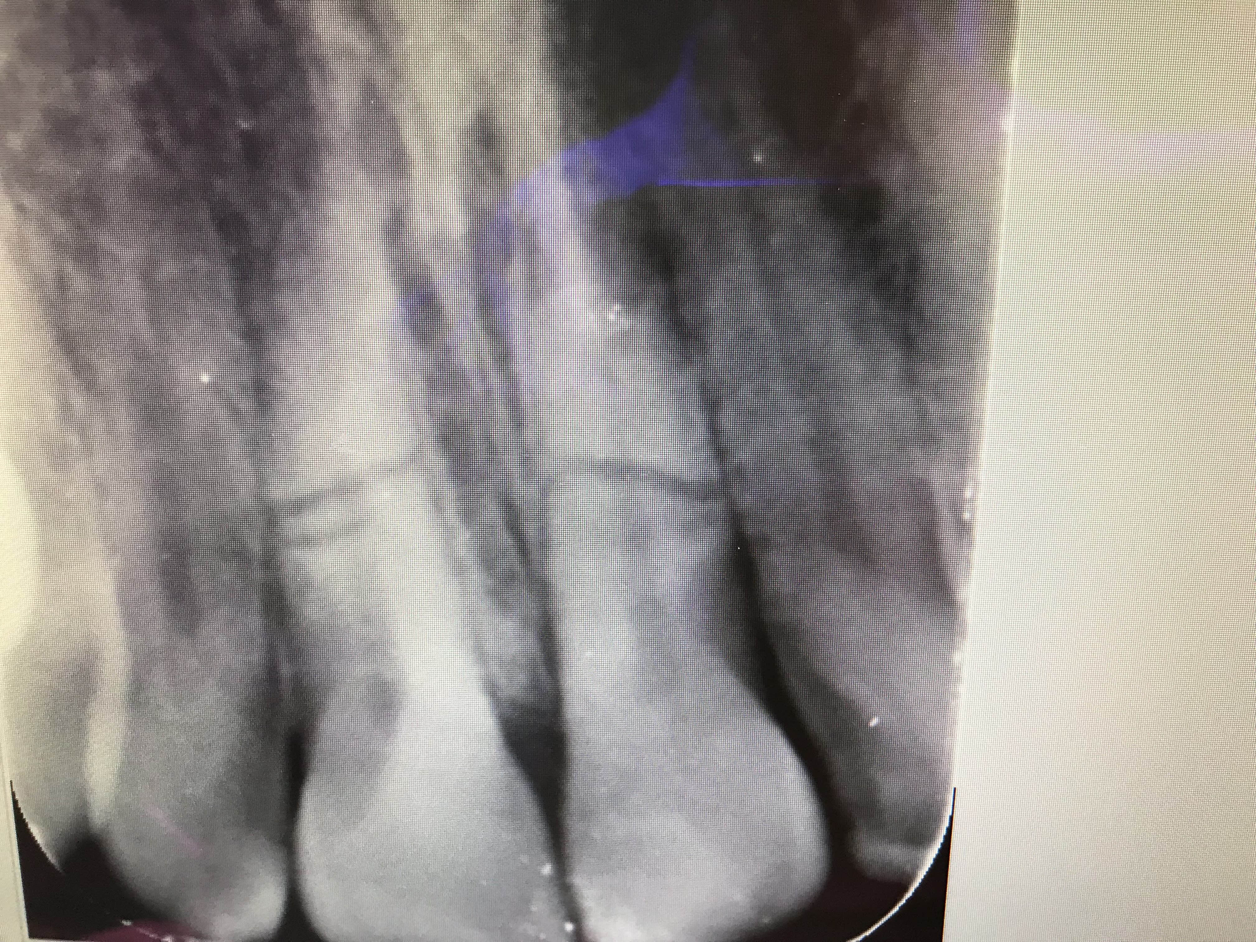 Alvéo mésiale distale, curetage et remis la dent avec un cavit. Je croise les doigts!!