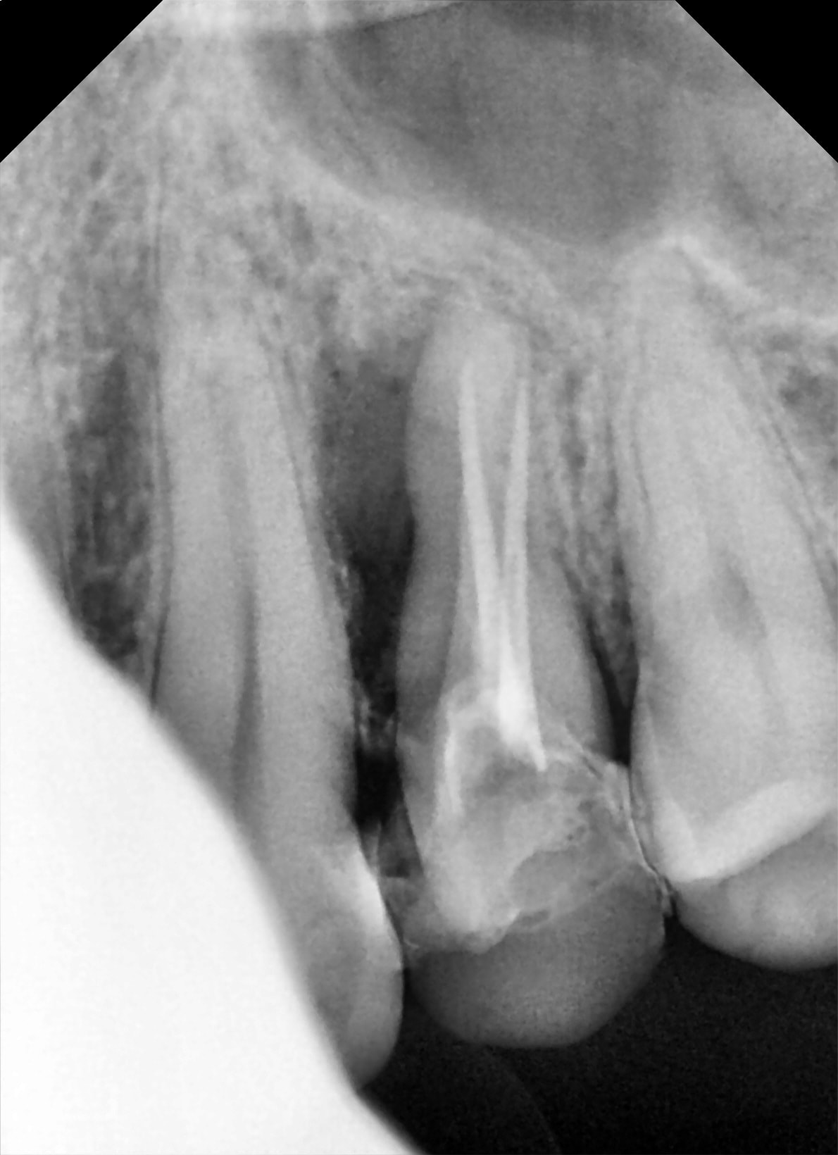 J’ai trouvé une indication réelle à l’ERI , c’est la lésion logée entre les racines . Ici pas de possibilité de faire de la résection. Imaginons que le traitement endo n’a pas d’effet => ERI