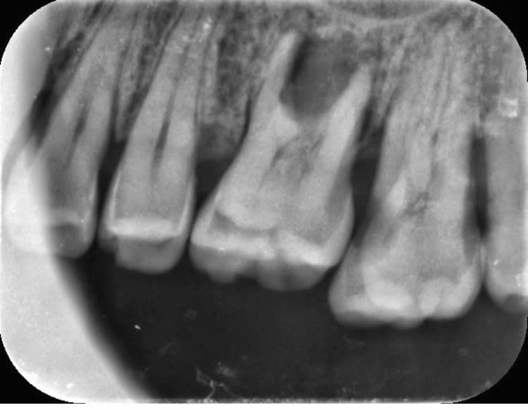 Alvéo mésiale distale, curetage et remis la dent avec un cavit. Je croise les doigts!!