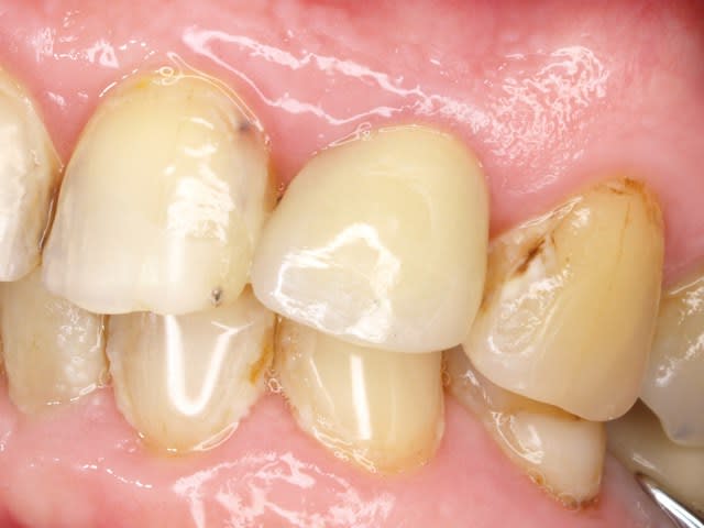 C'est un phénomène que l'on retrouve souvent chez les bruxomanes présentant une abrasion très avancée, et chez qui il n'y a point de douleur dentaire puisque le phénomène est lent et progressif, et laisse aux dents le temps de "s'auto dévitaliser".