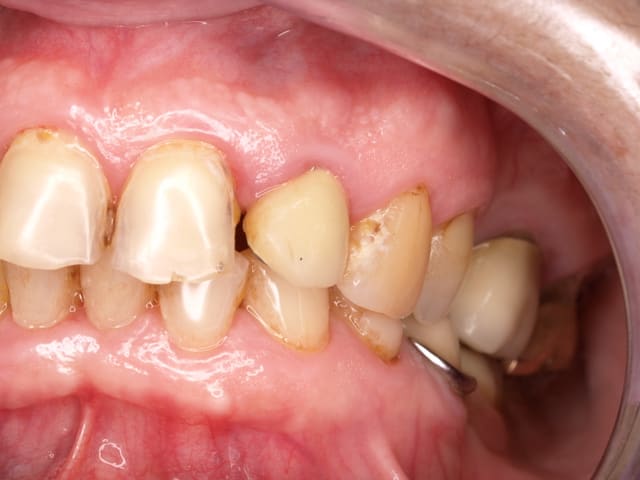 - secondo : je constate encore une fois une perte osseuse au niveau cervicale, qui aurait pu être évité en effectuant un traitement endodontique orthograde, avec des instrument adéquat et un appui pariétale en mésial.