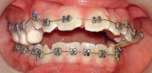 Planas (ou autre chose avec des pistes ou qui déverrouille l'occlusion) c'est une bonne idée, +/- distraction chirurgicale symphysaire.