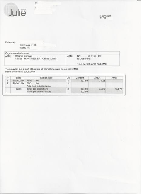 > devais 122.50€ au patient, donc je suis repassé en Ngap pour cet acte.