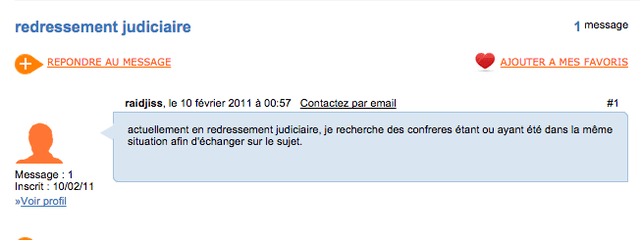 Un canard contre des chiens .. t'es pas tiré d'affaire . Si je peux me permettre de "juger " l'affaire : l'approche de raidjiss est intéressante , il a connu visiblement les 2 côtés de la force et il fait part de son expérience . Ta démonstration "psychologique" du profil de certains , Enlaye, est, elle aussi, intéressante . Le problème est l'opposition et là je vais donner raison à Raidjiss (et encore plus après le dernier post de chicot ! ) pourquoi le "critiquer" ou le railler ? Il sait très bien qu'il y a des charges personnelles ...lui rabacher ça .. c'est un peu vexant non ? lui étaler son investissement en lui disant que ça ne représente que 5% de ses charges : c'est un peu prétentieux , non ?