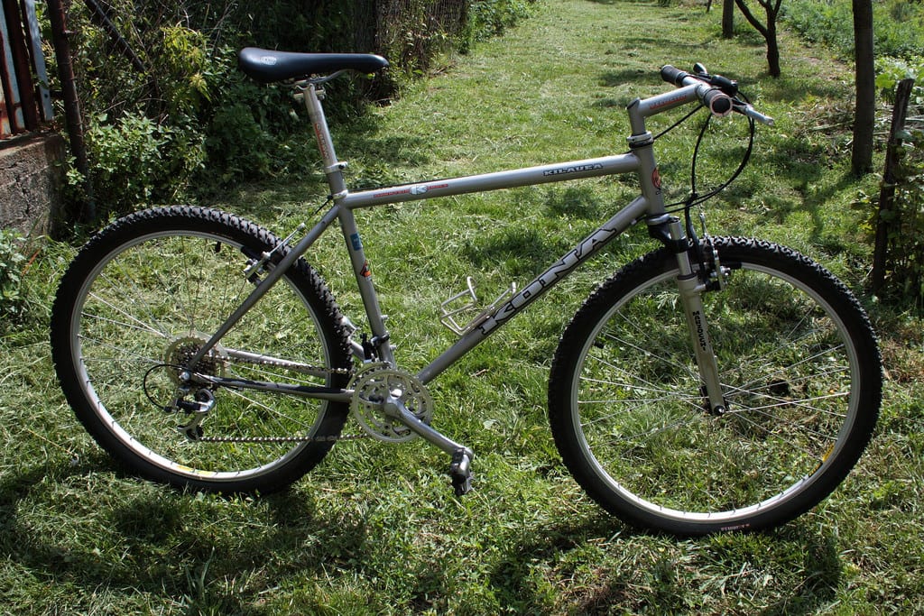 fourche MARZOCCHI à faible débattement (!), mais quand on venait de la route et du cyclo-cross, c'était déjà un petit + appréciable !