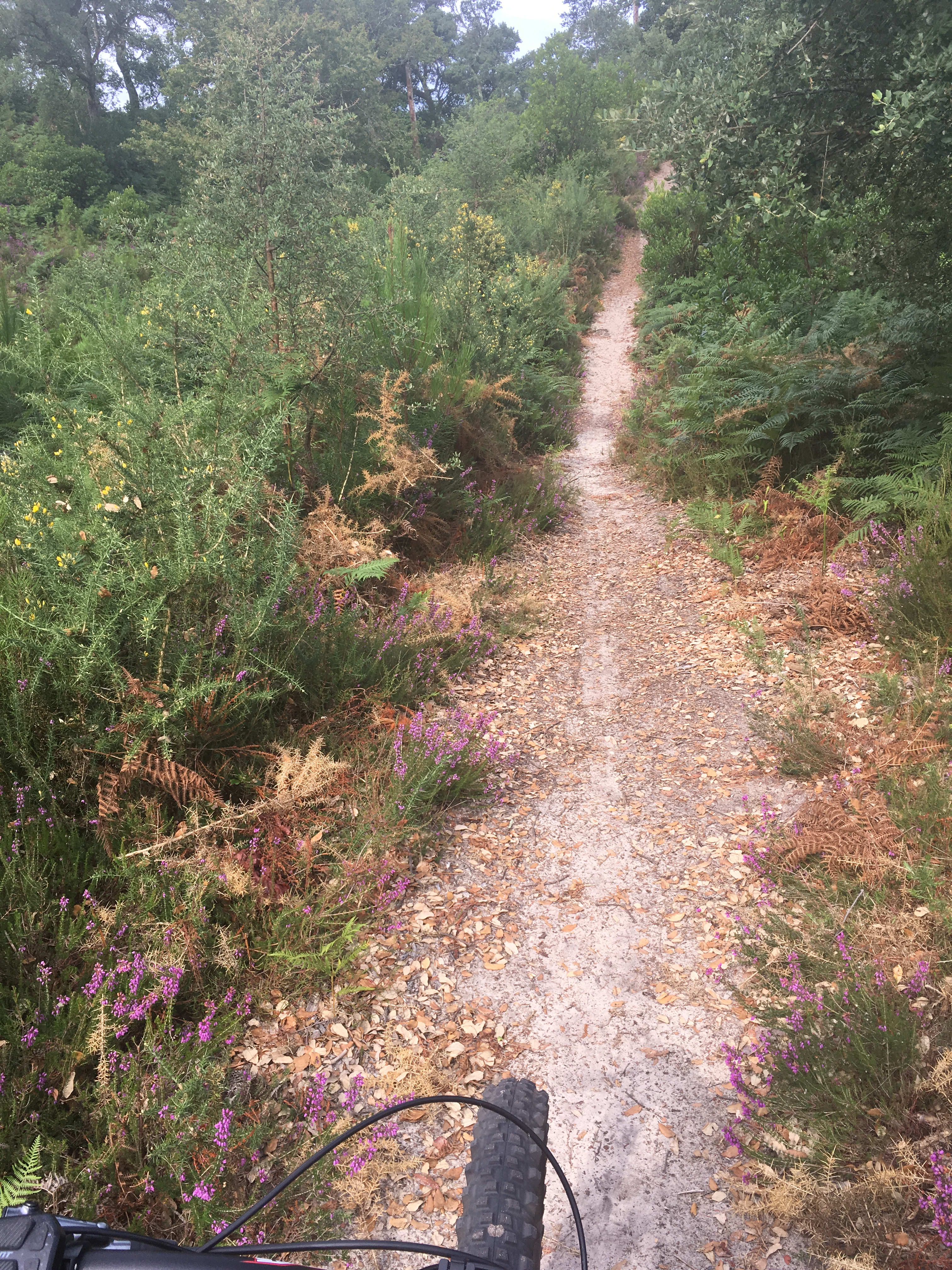 Changement de décor: forêt Landaise, l’assistante électrique n’est pas de trop si on veut avancer dans le sable. Au moins ici je ne risque pas la crevaison.