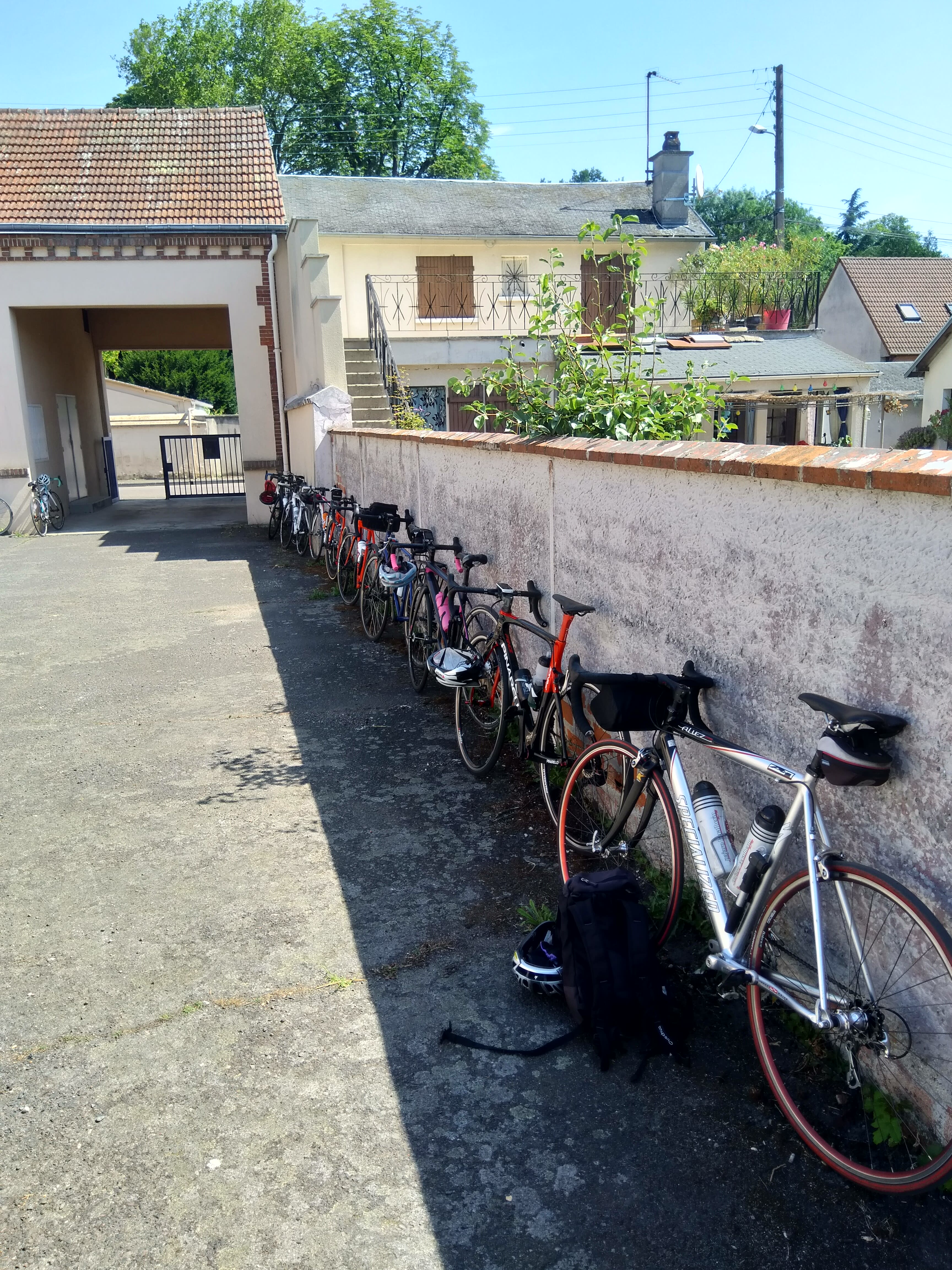 Ambiance club. L'avant dernier vélo est un Pinarello prince, splendide machine.