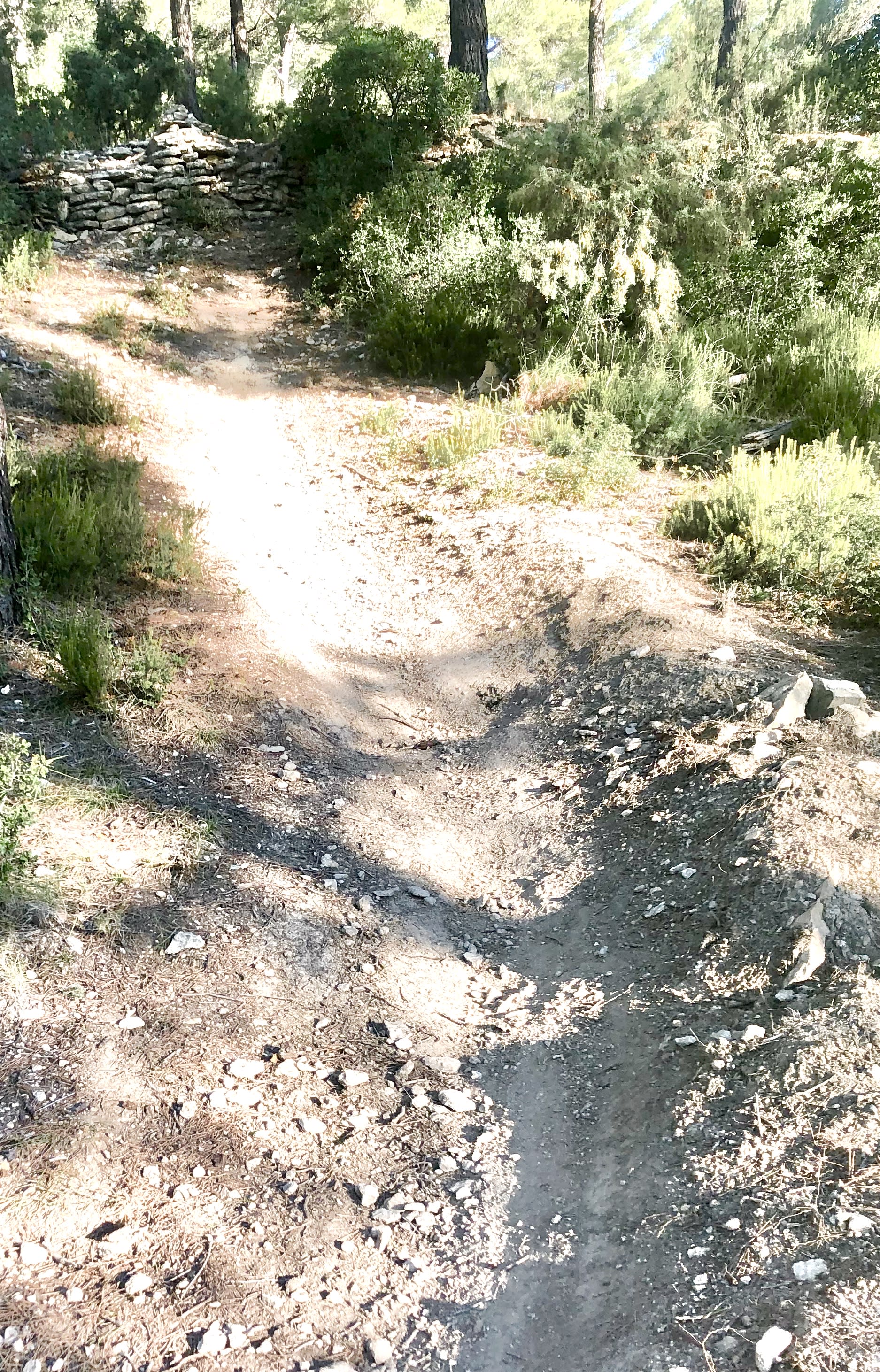 Moi c’est pour sortir vivant du saut du muret puis du pif paf à donf en descente que je roule 😁 et accessoirement aujourd’hui pour échapper aux chasseurs : plus d’une dizaine aux aguets tout en haut du massif, renseignement pris, ils ne tiraient que de la grives, c’était pas le moment de sauter trop haut 😱