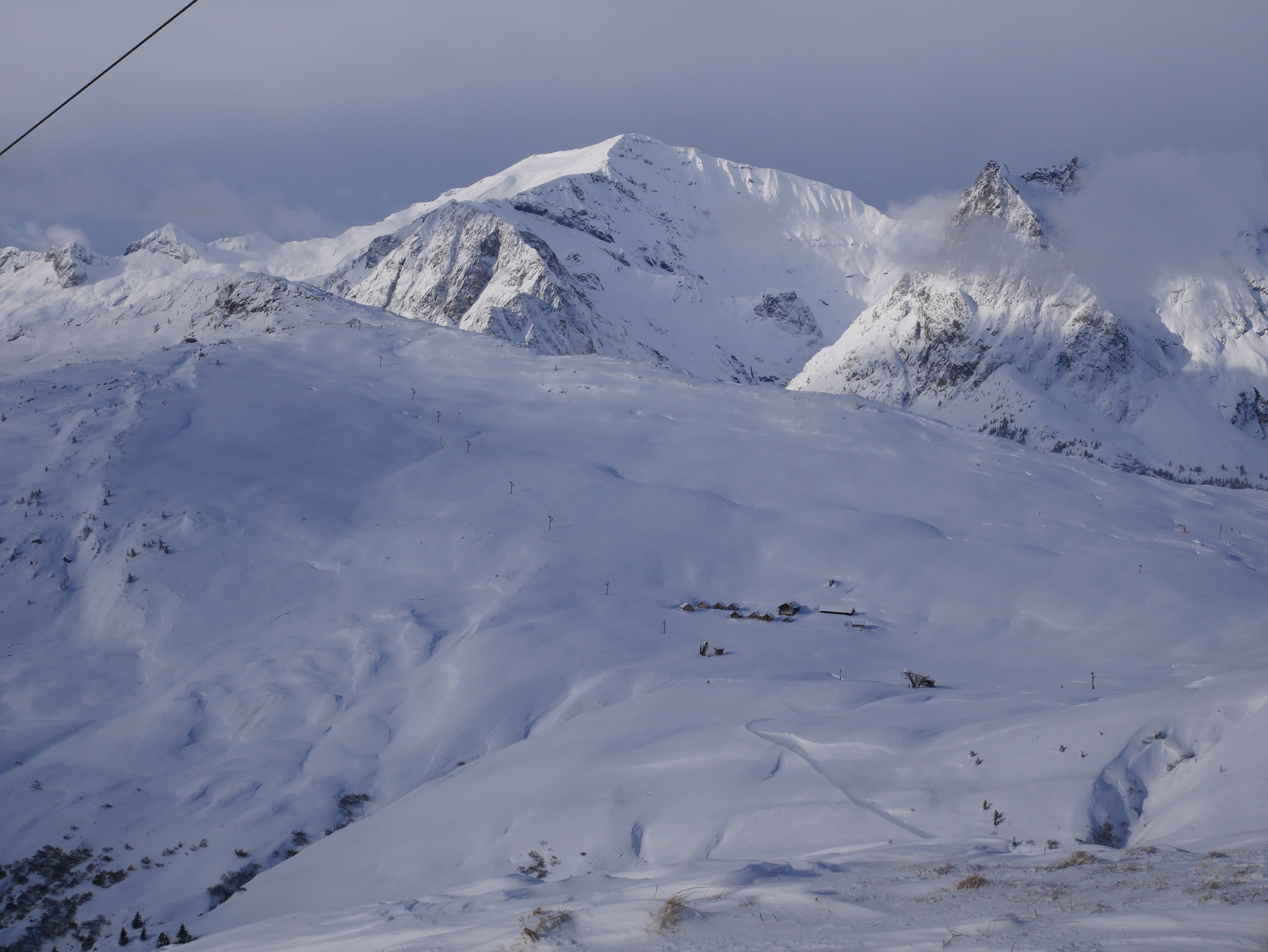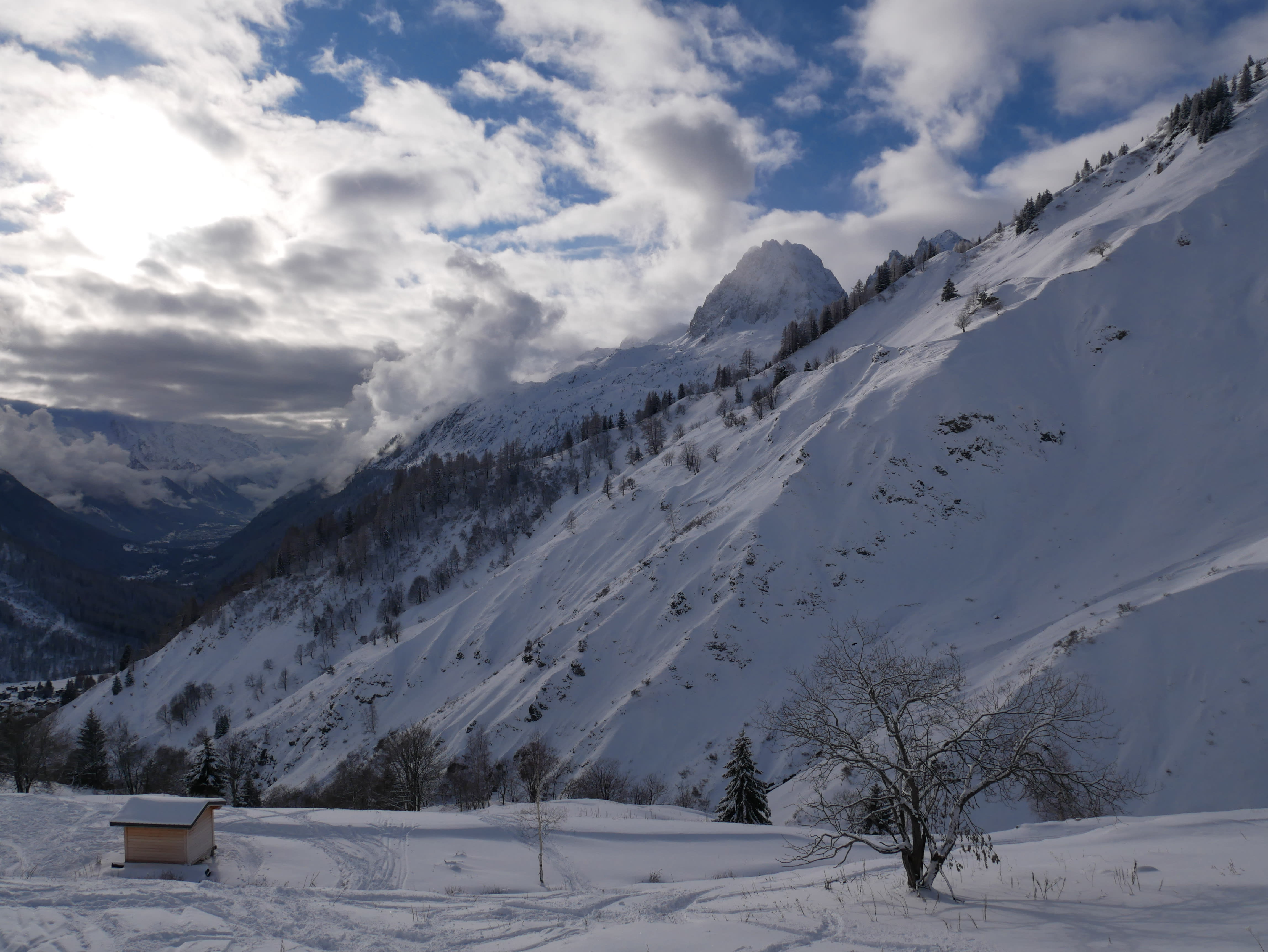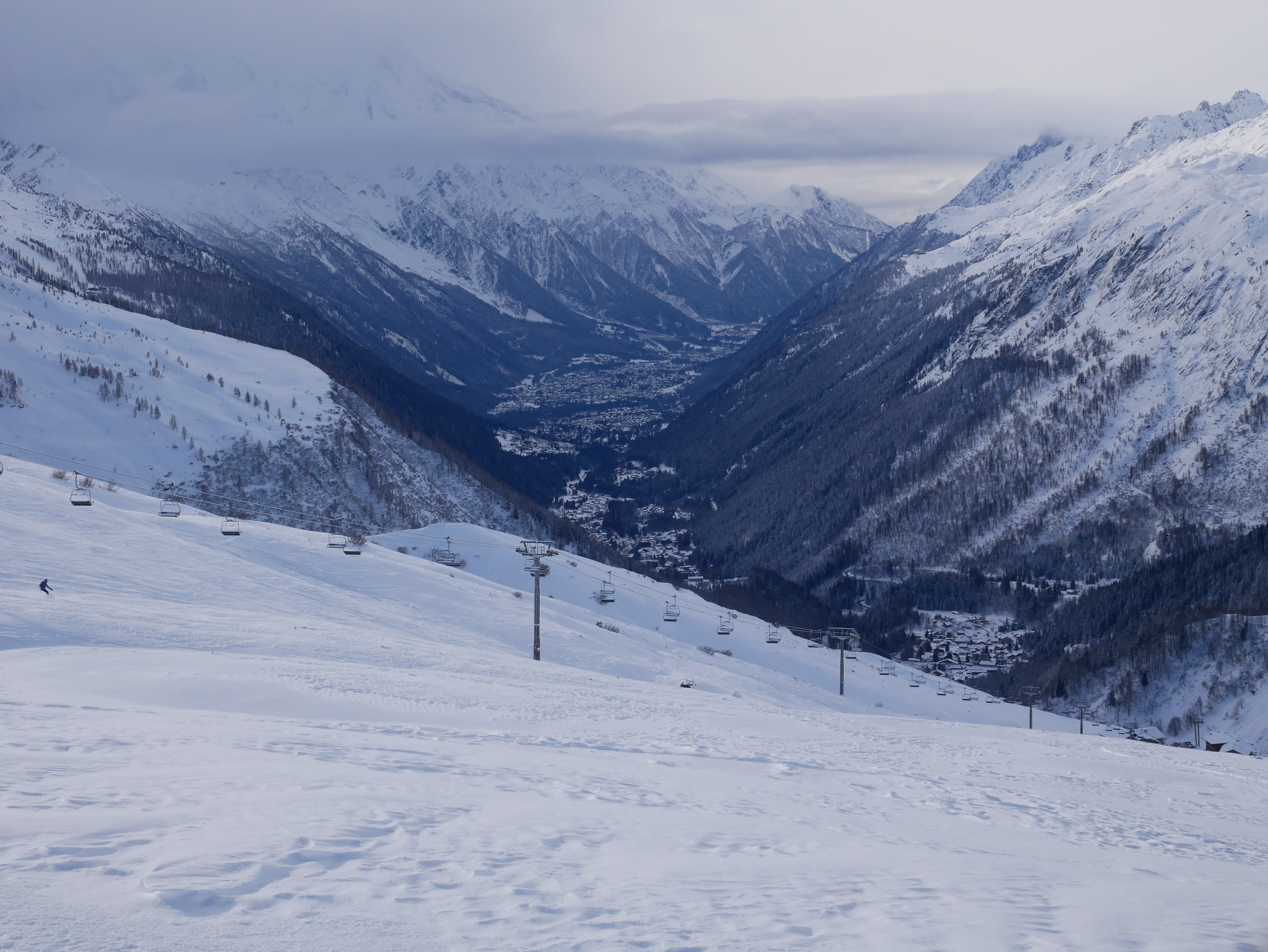 bon, en agrandissant c'est très flouté mais je vois dans la vallée des immeubles tout au fond qui evoquent des constructions à Chamonix, une route large et à un endroit un petit tunnel....