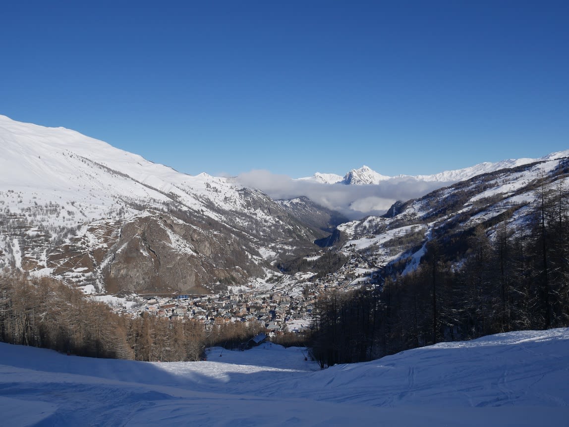 Objectif, sommet de la station, via le domaine skiable; la moitié inférieure est préparée, au-dessus c'était bien épais.