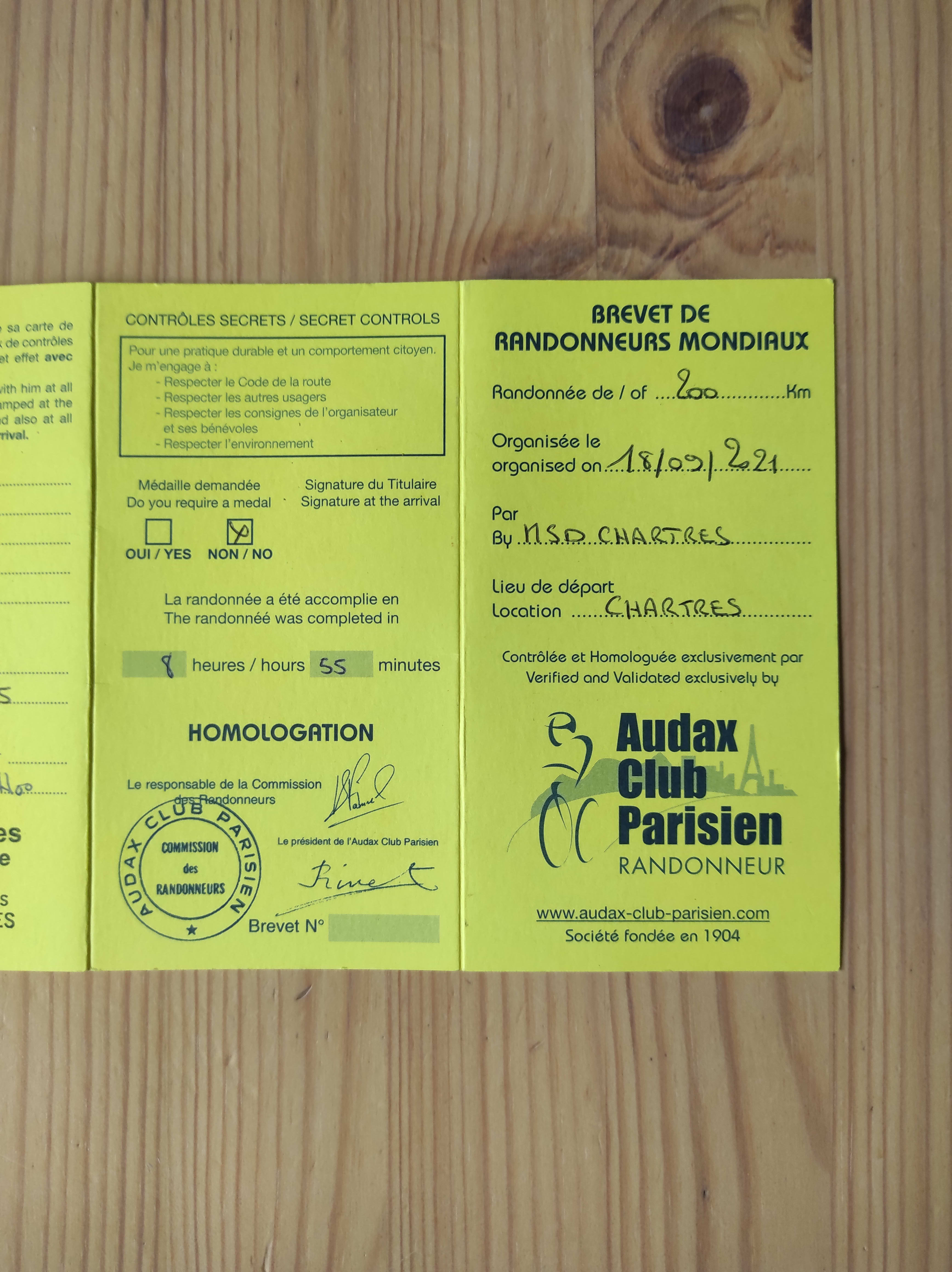 Les brevets sont de 200, 300, 400, 600 et 1000 km. En gros je suis ceinture jaune de vélo 😂