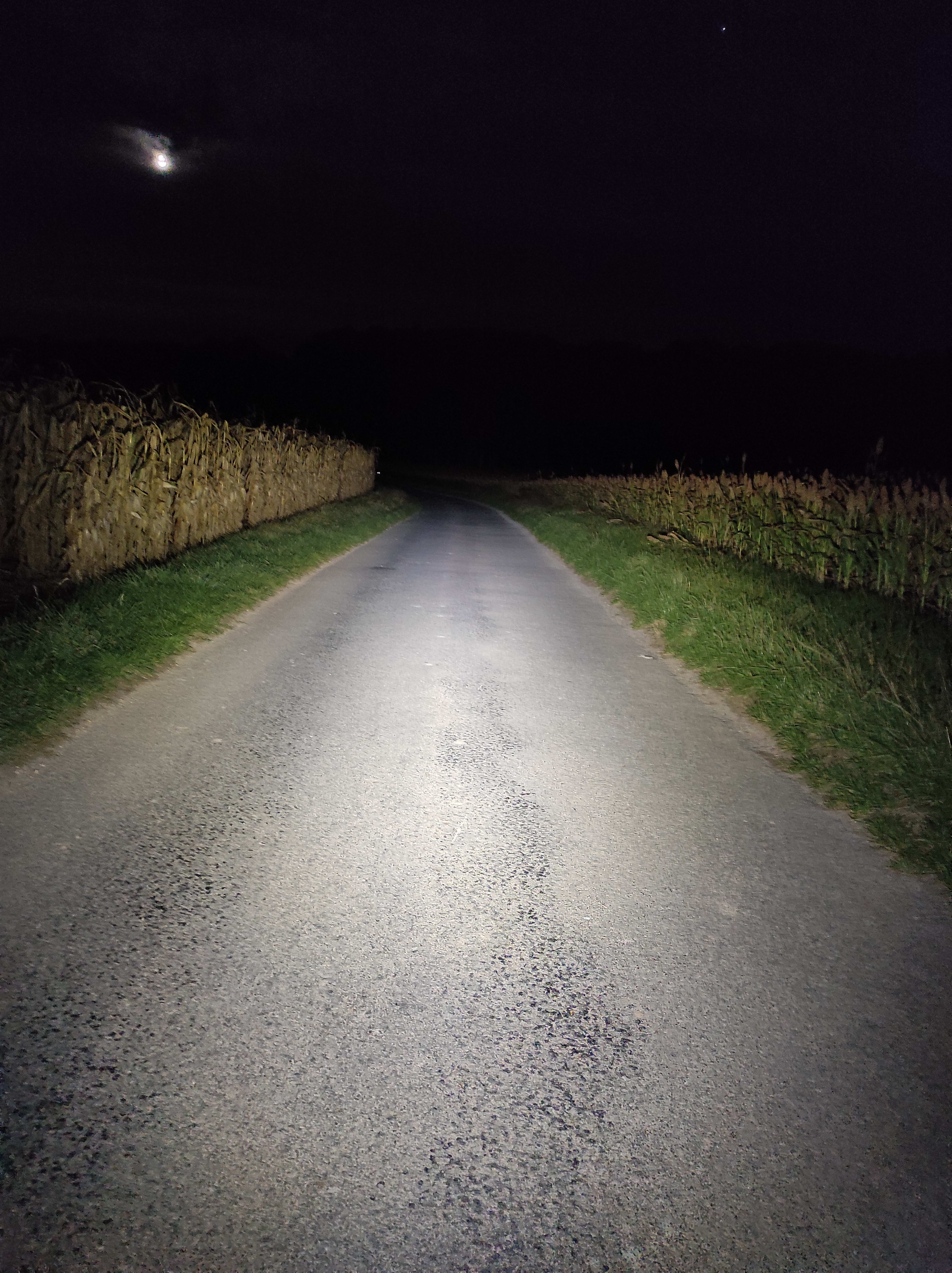 Le code de la route dit éclairage fixe, mais clignotant on te voit mieux.