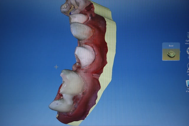 Donc sur 21 ce sera CVI compo et sur la 11 on a, en plus de la fracture, de sacré fissures. Je vais placer un CVI sur la zone de fracture et directement planter une couronne cerec emax fine en gardant un max d'email pour un collage parfait. Au pire il suffira d'un trou pour la bio en palatin et à refaire à la majorité après son ortho à venir. D'ailleurs pour l'ortho, la 22 risque de poser problème.
