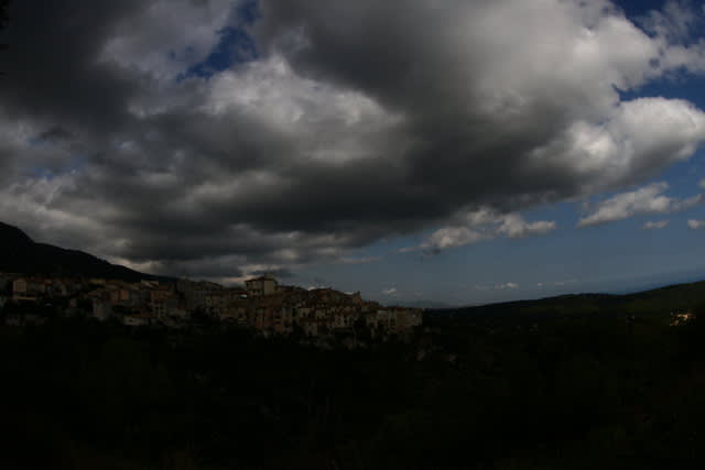 > je dirais Gourdon, avec vue sur la côte, mais le ciel y est généralement plus