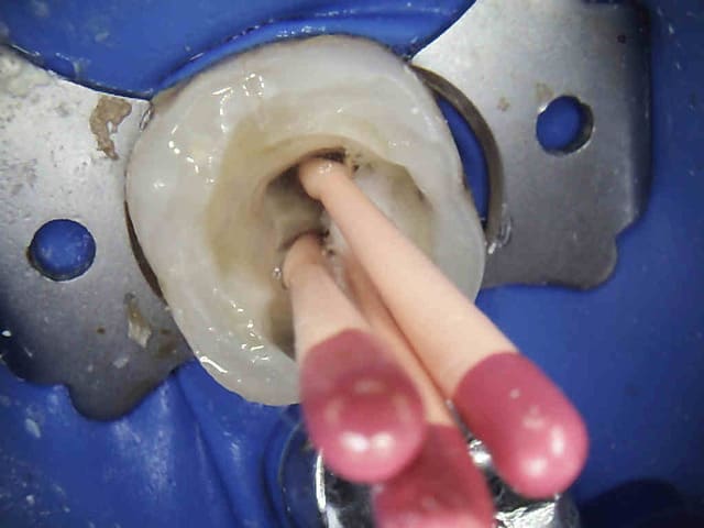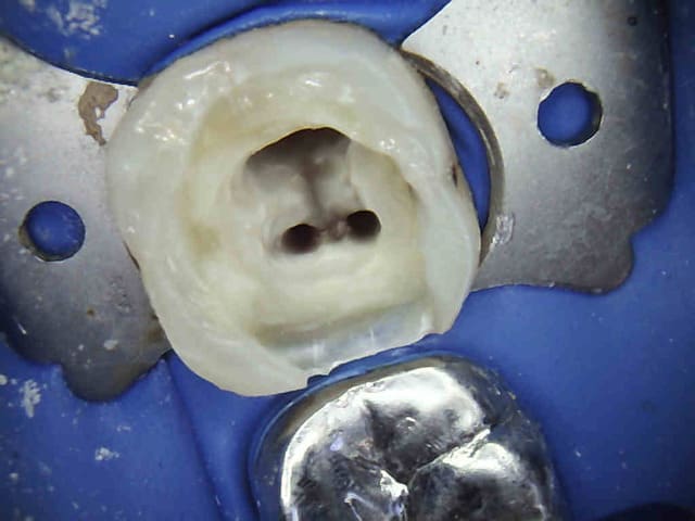 Dis donc chicot t'es peut être le roi de l'endo mais au niveau économie tissulaire , ouverture de chambre , tu utilises un black et decker comme contre angle ?... t'y vas pas de main morte ... t'aurais peut être pu éviter le tenon alors , et qui sait la couronne .... et puis un genre screw post titane ? avec un matériau plastique perso je trouve pas ça terrible ... mais je ne suis qu'une petite dentiste qui utilise encore l'amalgame ... houuuu la méchante .....bon et puis la (ou le ) mitrailler comme ça pendant le soin juste pour nous montrer , faut pas tu sais , tu perds un temps fou ... après le temps de poster tout ça ..... t'imagines le temps perdu pour la rentabilité du cabinet ....