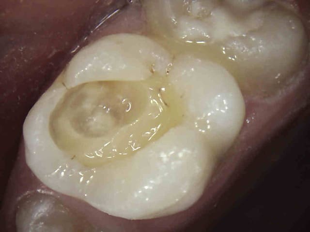 Pulpite indication endo. perte de substance: Indication onlay , mais pas dans le panier de soins donc sc 33, couronne coulée : patiente CMU.