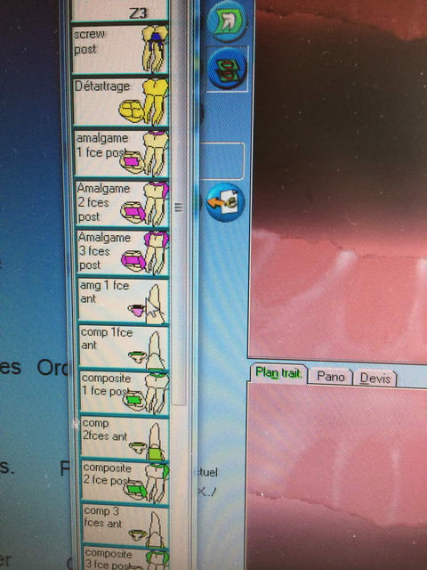 Multiplié par 2 pour les amalgames(j'en fait encore), multiplié par 2 pour les deux localisations égal 78 ! A quoi ça sert de détailler, simple, le patient voit son schéma à l'écran au dessus du fauteuil, et quand il me dit c'est le plombage de la dernière fois qui est parti, il lui est facile de voir que c'est en fait de l'autre coté qu'il a perdu quelque chose ! Et puis j'ai toujours fait comme cela, s'il faut perdre les bonnes habitudes parce que le logiciel ne suit pas, ça ne me va pas.