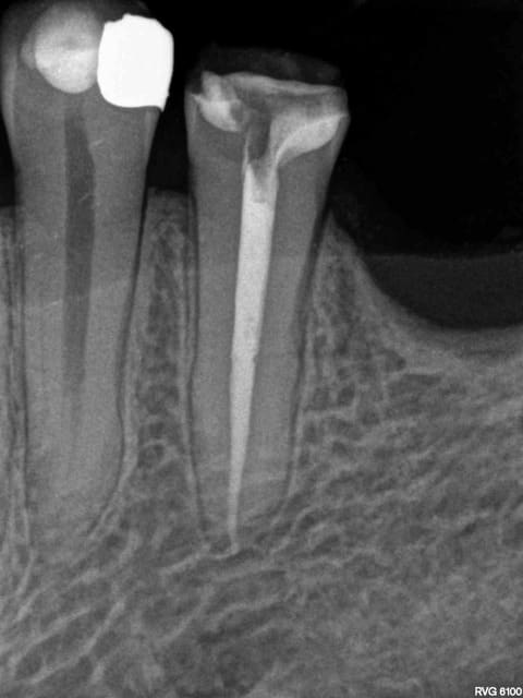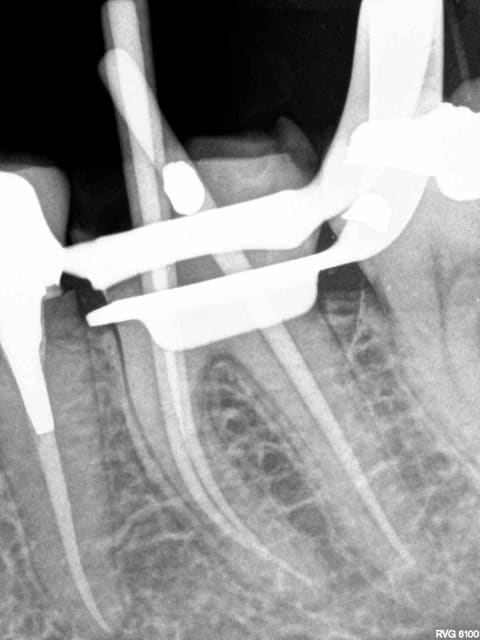 On n'a pas parlé de la distale mais c'est vrai que pour moi c'est nettement plus chiant à reprendre que la mésiale. Pour enlever toute cette substance radioopaque il faut beaucoup aléser, et il en restera toujours.