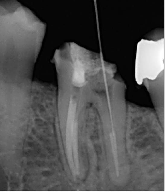 Je me permet de vous demander un conseil; suite à la découverte d'une image sur une 36 je me suis lancé dans la dépose et le retraitement, sauf que je ne progresse absolument pas... J'utilise les protapers de retraitement et rien ne se passe, malgré tous les solvants essayés : essence d'orange, eucalyptus ou rockle's (acétate de dexaméthasone).