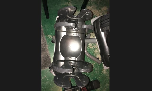Haltères automatiques, body solid. De 5 à 32.5 KG. Remplacent 19 paires d'haltères. Sur chariot à roulettes bloquantes, très pratique.
