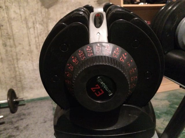 > Haltères automatiques, body solid. De 5 à 32.5 KG. Remplacent 19 paires