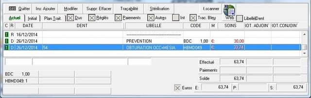 - faire RX, taper 2 codes (peu de soins différents) sur un clavier pour facture, impression feuille, chèque ou espèces, rendez vous et au revoir.
