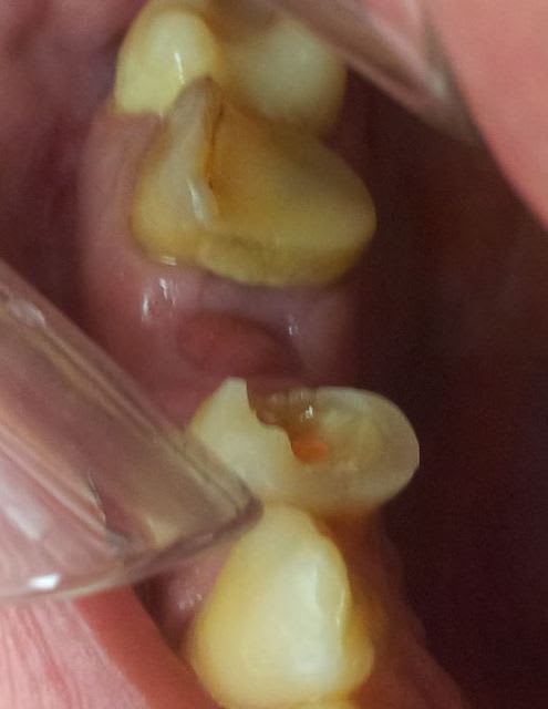 Mais l'alvéole de 25 ne me plait pas: bourgeonnement, et sur la radio on voit encore bien la lamina dura de l'alvéole .