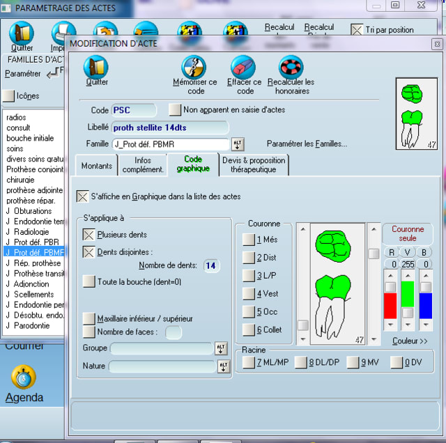 Puis pour ta prothese provisoire, tu cliques sur prothese adjointe, tu trouves le code de ta prothese transitoire 14 dts,et tu le paramètres (je ne suis pas au cab!, pas de imprecran!) comme plus haut.