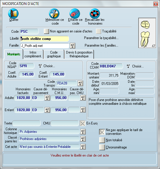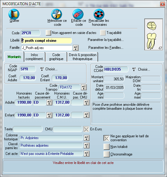 " les dents saisies sont incompatibles avec l acte CCAM
