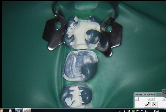 > ait préparée la digue (clamp, champ perforé, pince, cadre). si la dent est très